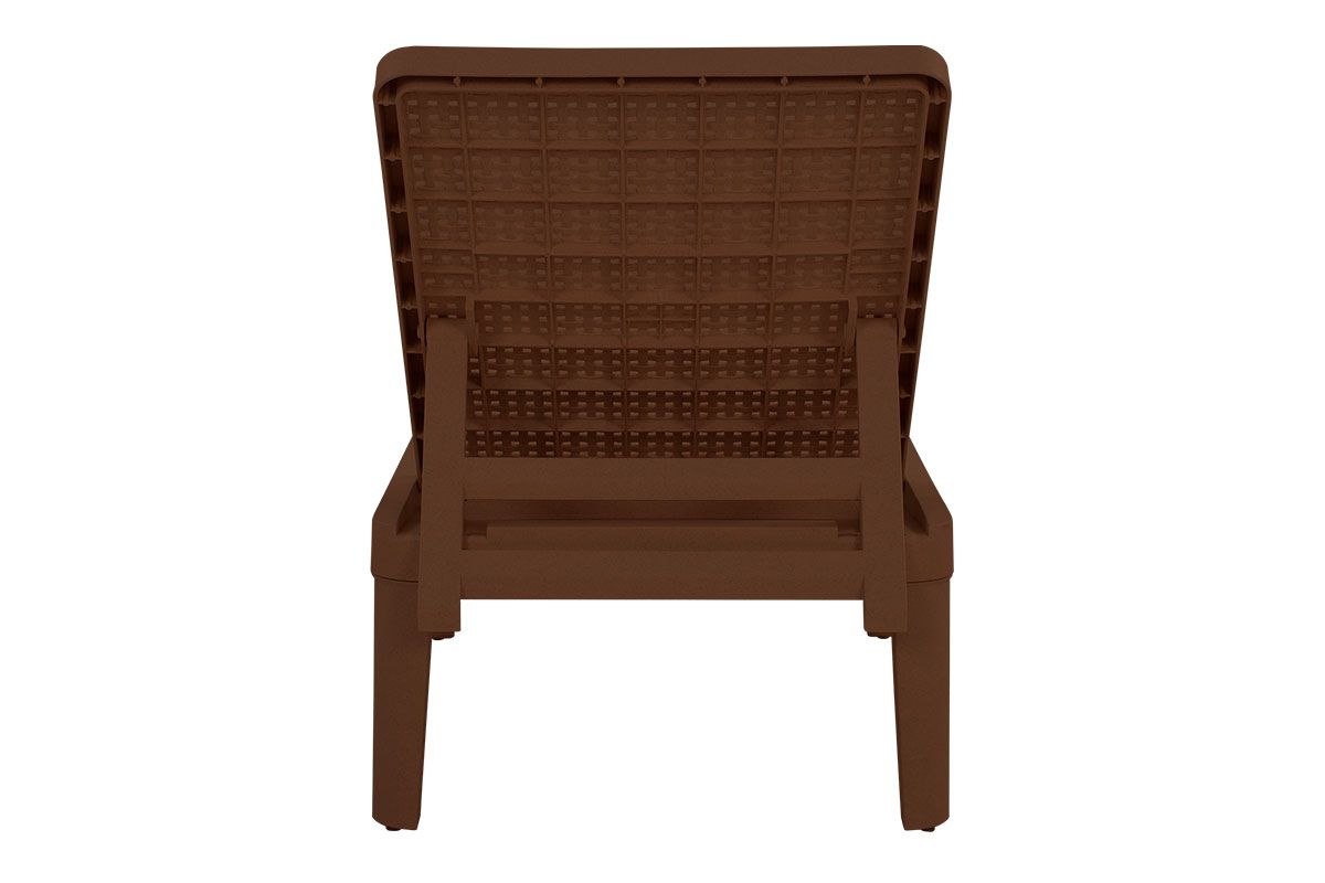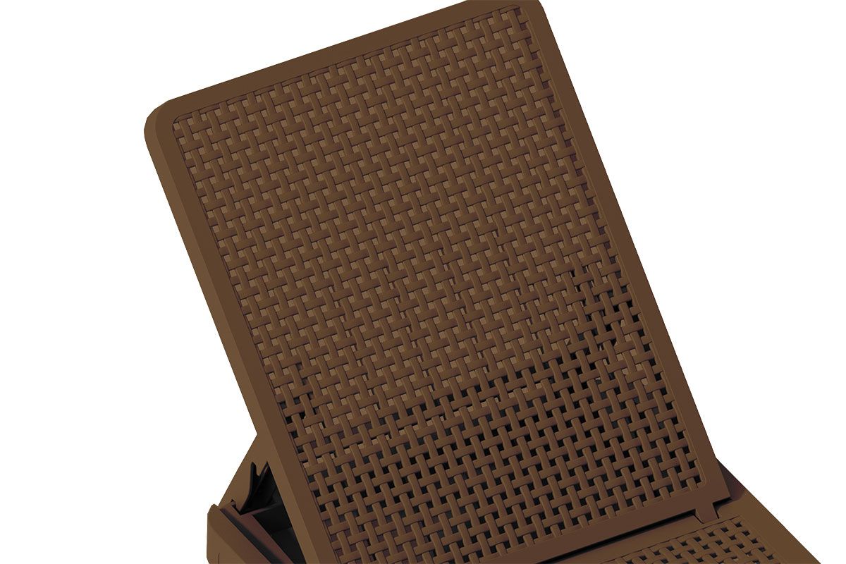 Шезлонг складной – функциональный компактный садовый лежак с поверхностью, напоминающей фактуру плетеного ротанга.