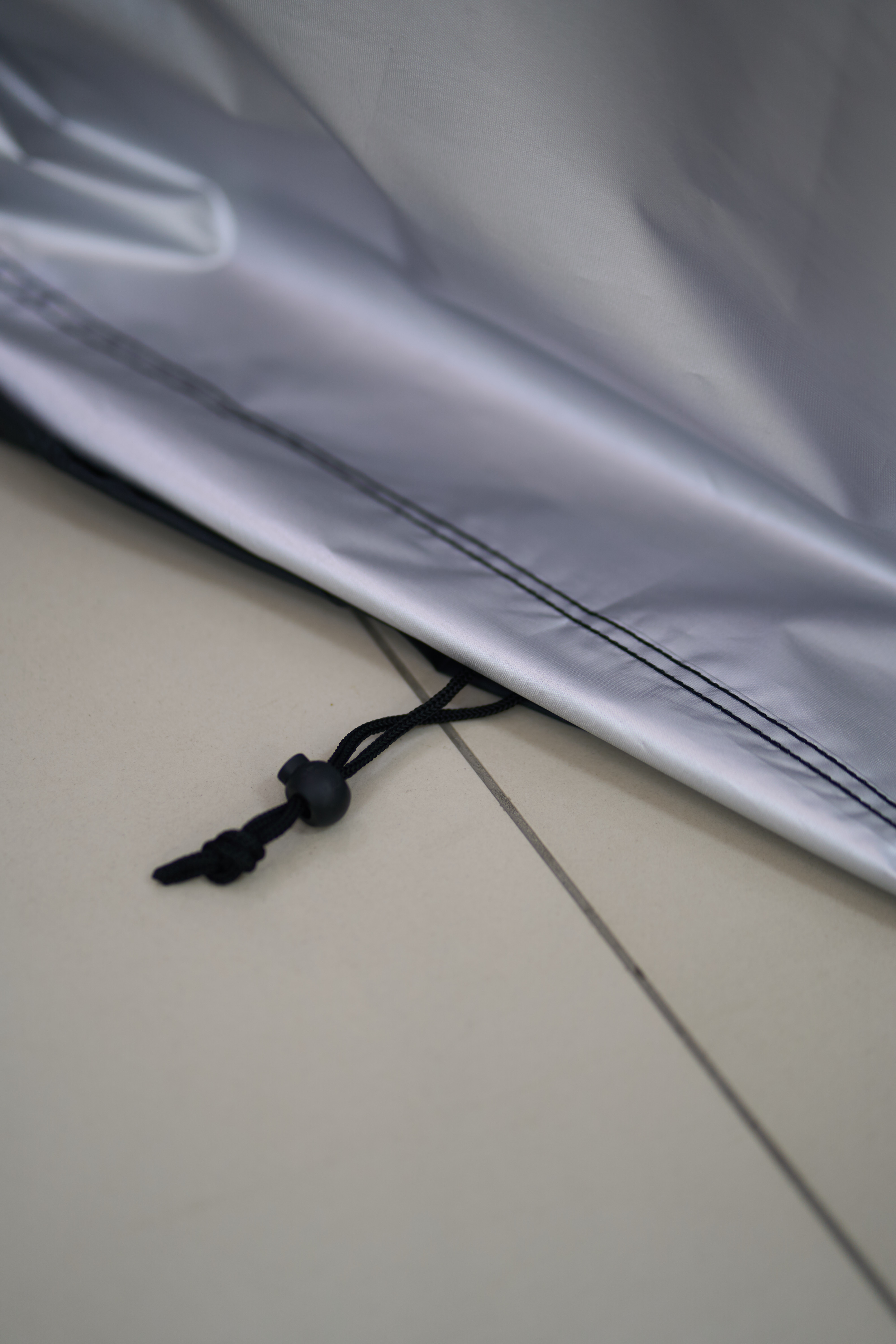Летом в жаркую погоду мы советуем надевать чехол обратной строной, то есть серебристой подкладкой сверху. Но постоянно так делать не рекомендуется, чтобы не повредился гидроизоляционный скотч на швах.